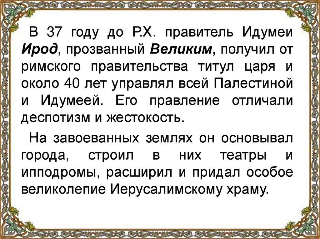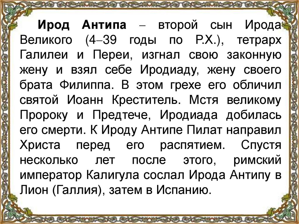 Ирод Антипа второй сын ИродаВеликого (4 39 годы по Р.Х.), тетрарх