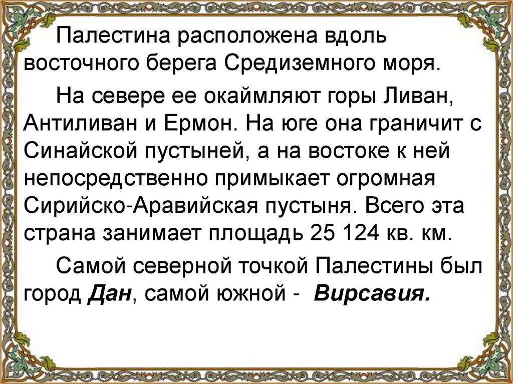 Палестина, природа. Географическое положение