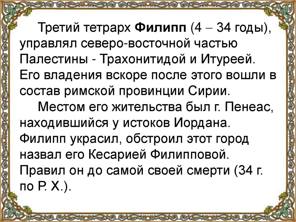 Третий тетрарх Филипп (4 34 годы),управлял северо-восточной частью