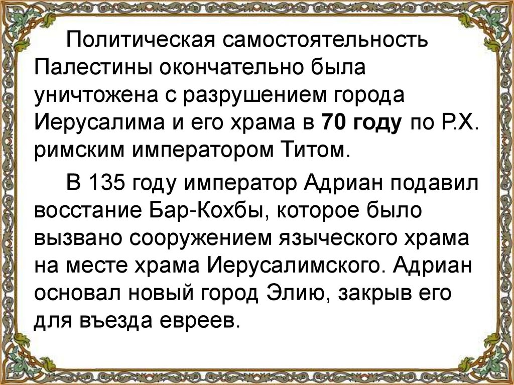 императора. Поскольку Палестина