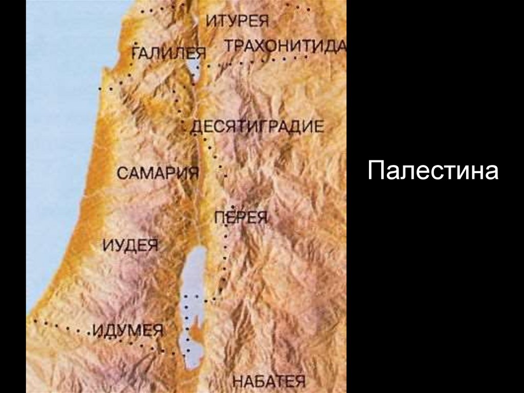 Палестина расположена вдольвосточного берега Средиземного моря.