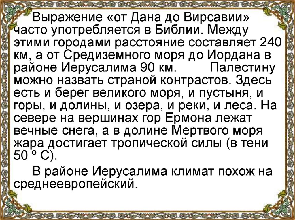 Выражение «от Дана до Вирсавии»часто употребляется в Библии. Между