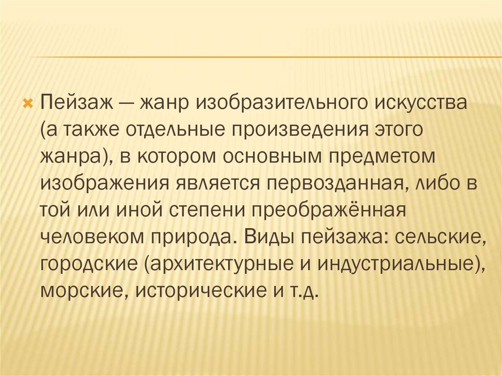 Пейзаж — жанр изобразительного искусства(а также отдельные произведения этого