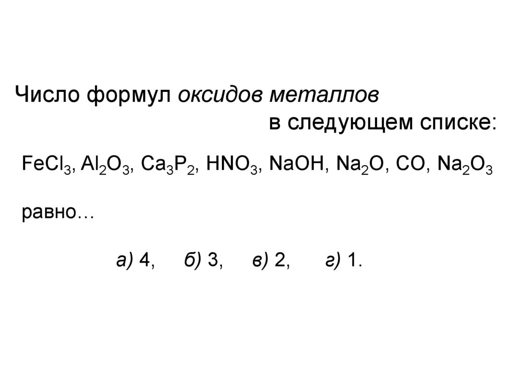Число формул оксидов в следующем списке:HCl, LiOH, H2O, H3PO4, P2O5, Li2O, LiH, CaO