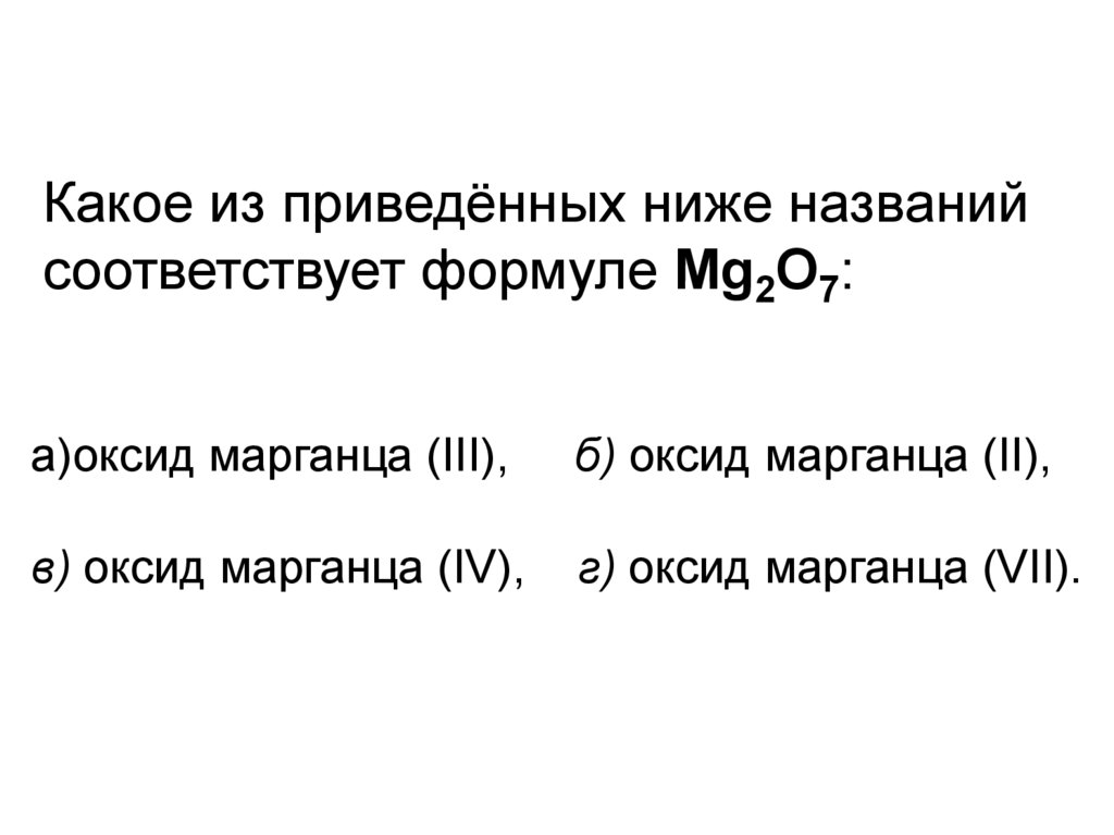 Какое из приведённых ниже названийсоответствует формуле Mg2O7: