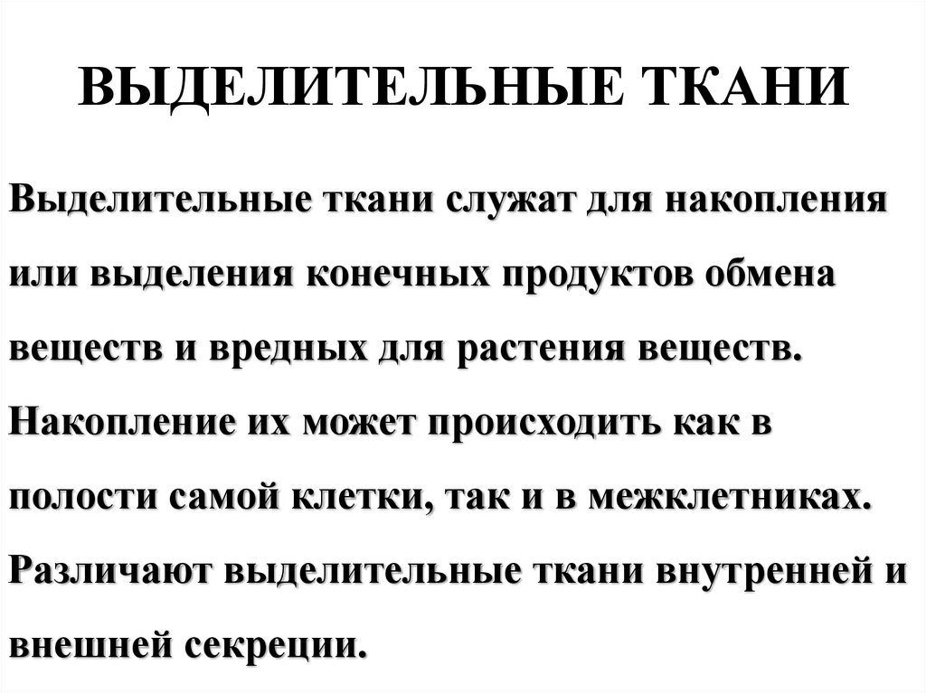 Различают выделительные ткани внутренней и