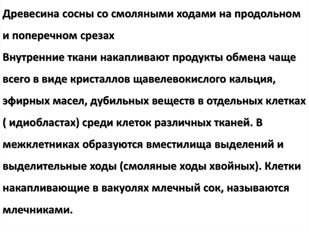 выделительные ходы (смоляные ходы хвойных). Клетки