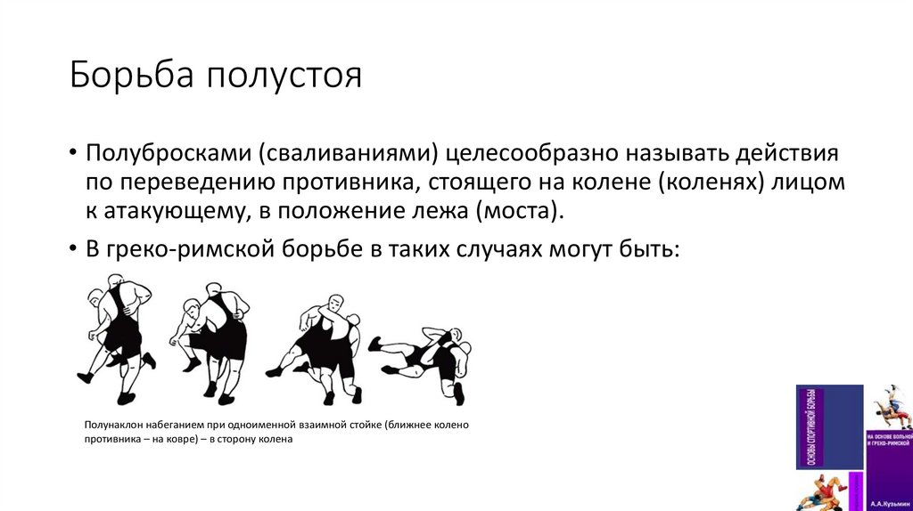 Борьба полустоя• Полубросками (сваливаниями) целесообразно называть действия