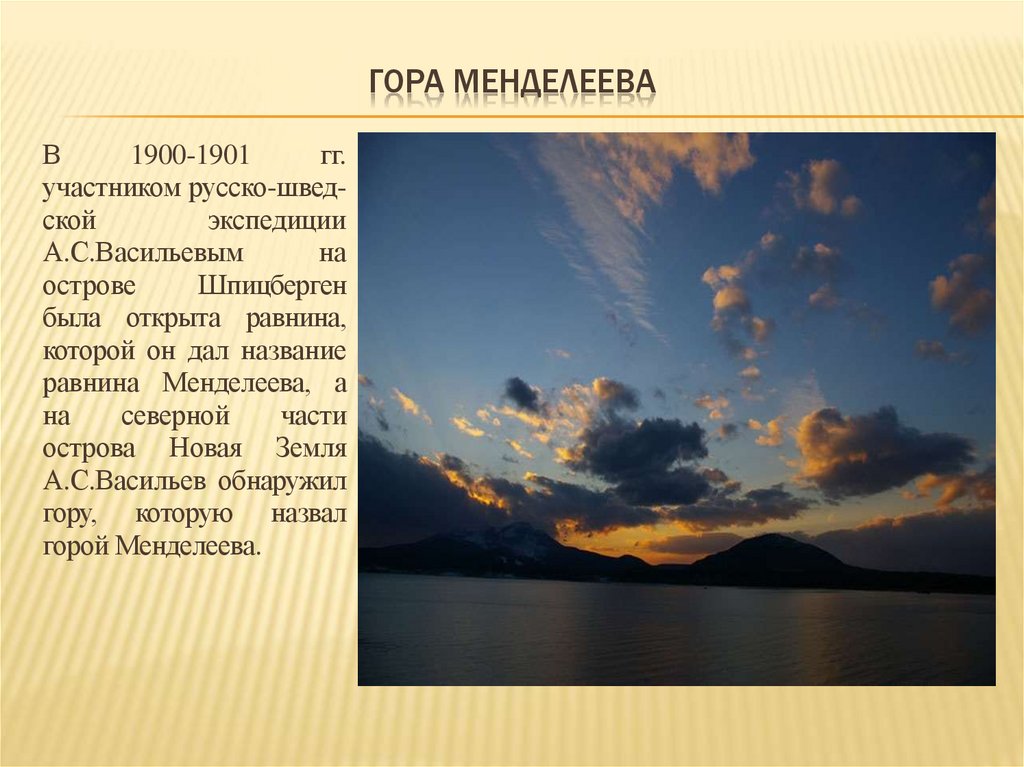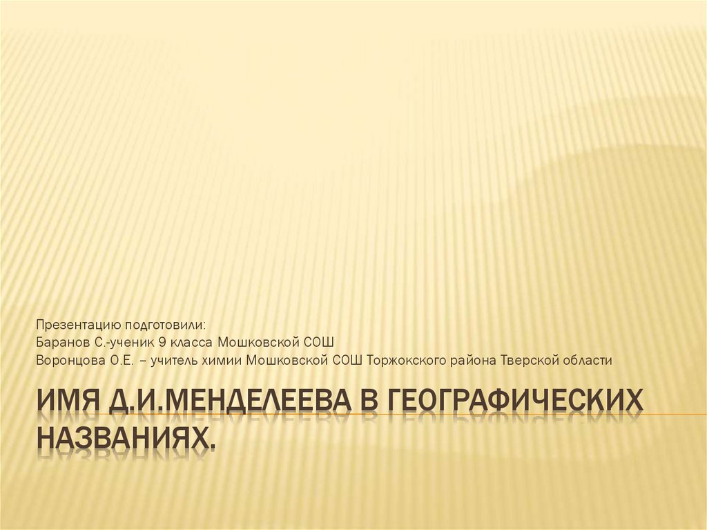 ИМЯ Д.И.МЕНДЕЛЕЕВА В ГЕОГРАФИЧЕСКИХ