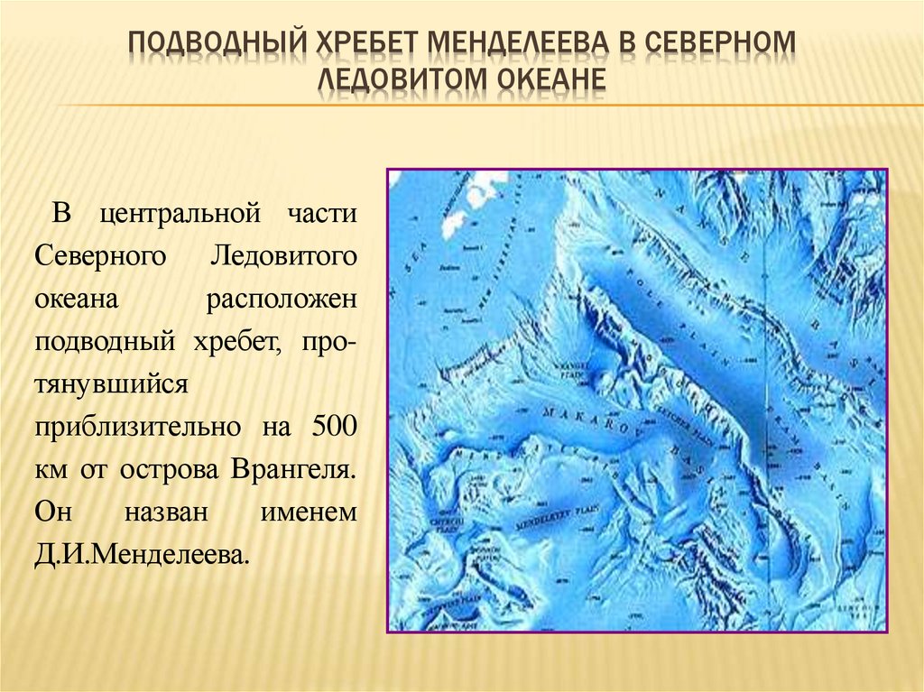 ПОДВОДНЫЙ ХРЕБЕТ МЕНДЕЛЕЕВА В СЕВЕРНОМЛЕДОВИТОМ ОКЕАНЕ