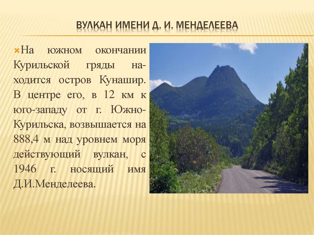 ВУЛКАН ИМЕНИ Д. И. МЕНДЕЛЕЕВАНа