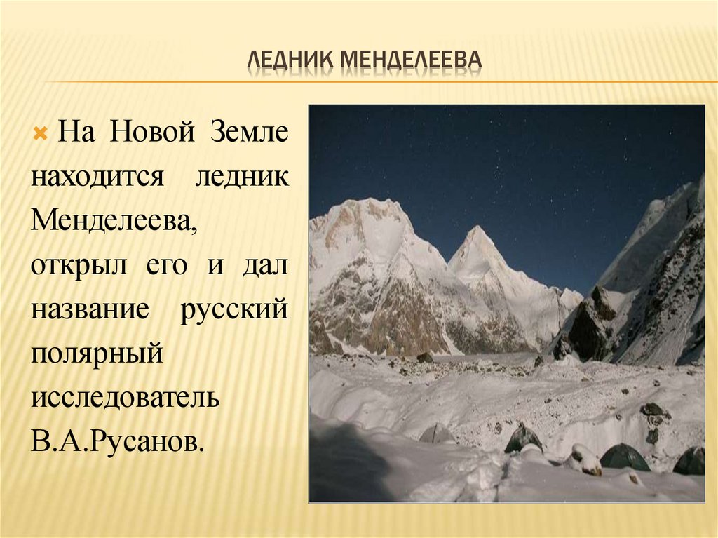 ЛЕДНИК МЕНДЕЛЕЕВАНа Новой Земле