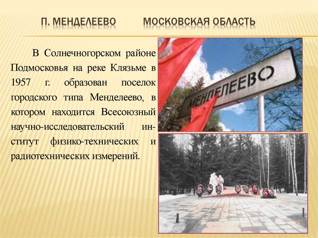 П. МЕНДЕЛЕЕВОМОСКОВСКАЯ ОБЛАСТЬ