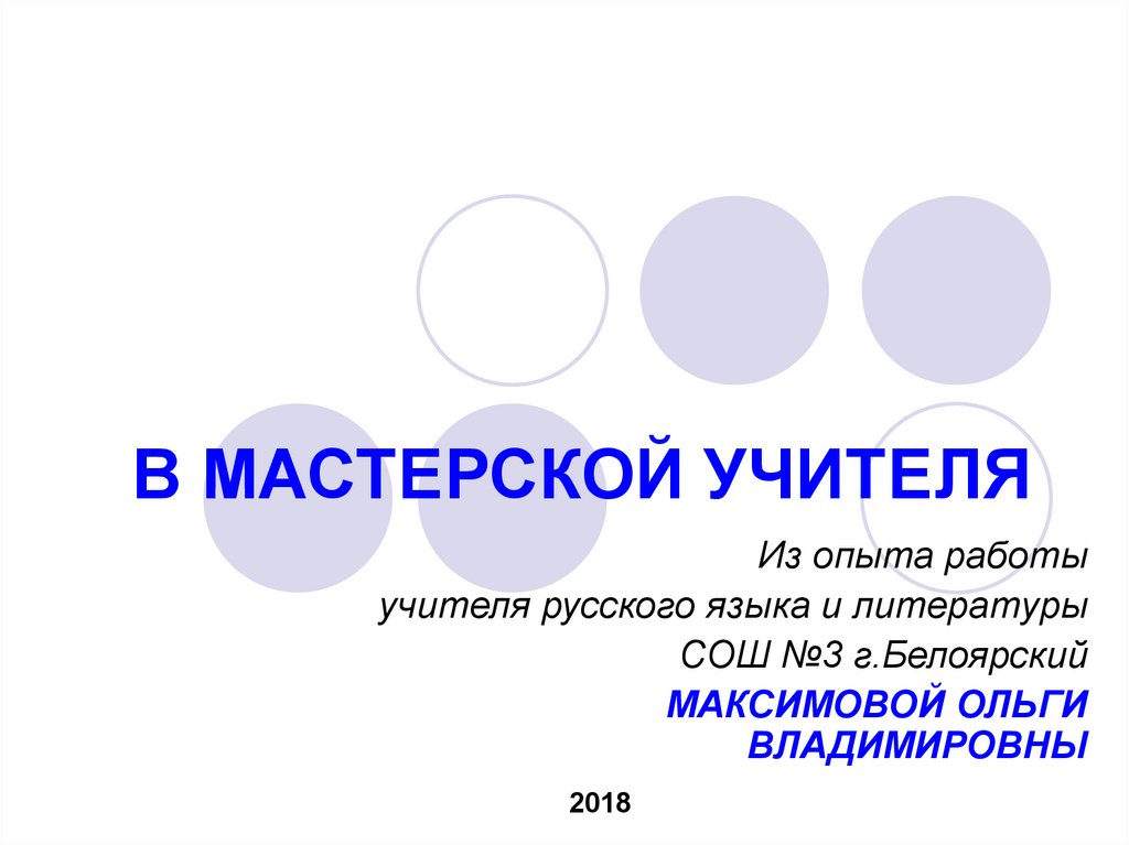 1. В МАСТЕРСКОЙ УЧИТЕЛЯ