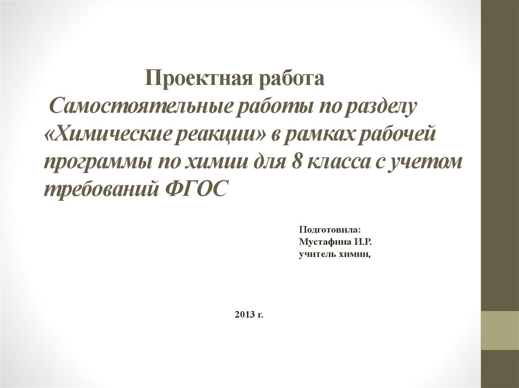 Самостоятельные работы по разделу «Химические реакции» в рамках рабочей программы по химии для 8 класса
