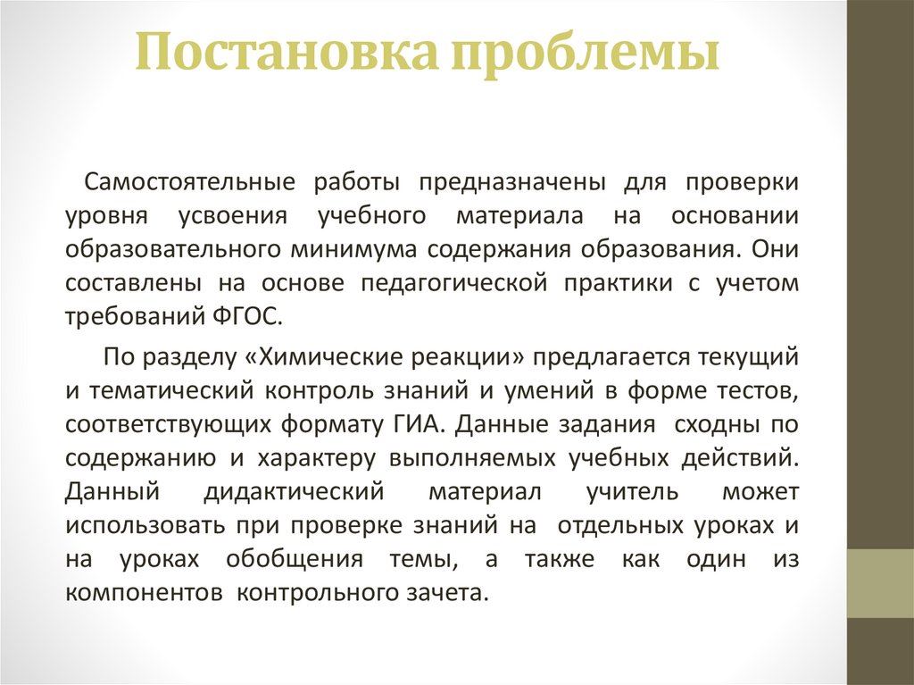 Постановка проблемыСамостоятельные работы предназначены для проверки