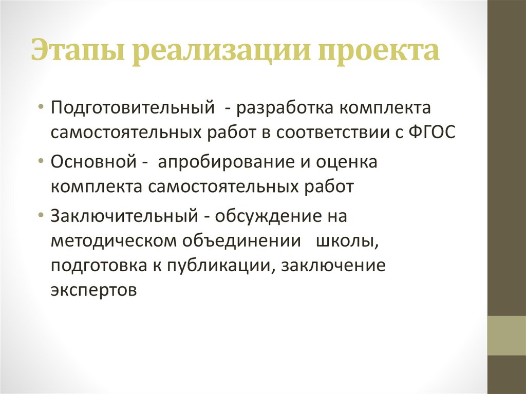 Этапы реализации проекта• Подготовительный - разработка комплекта