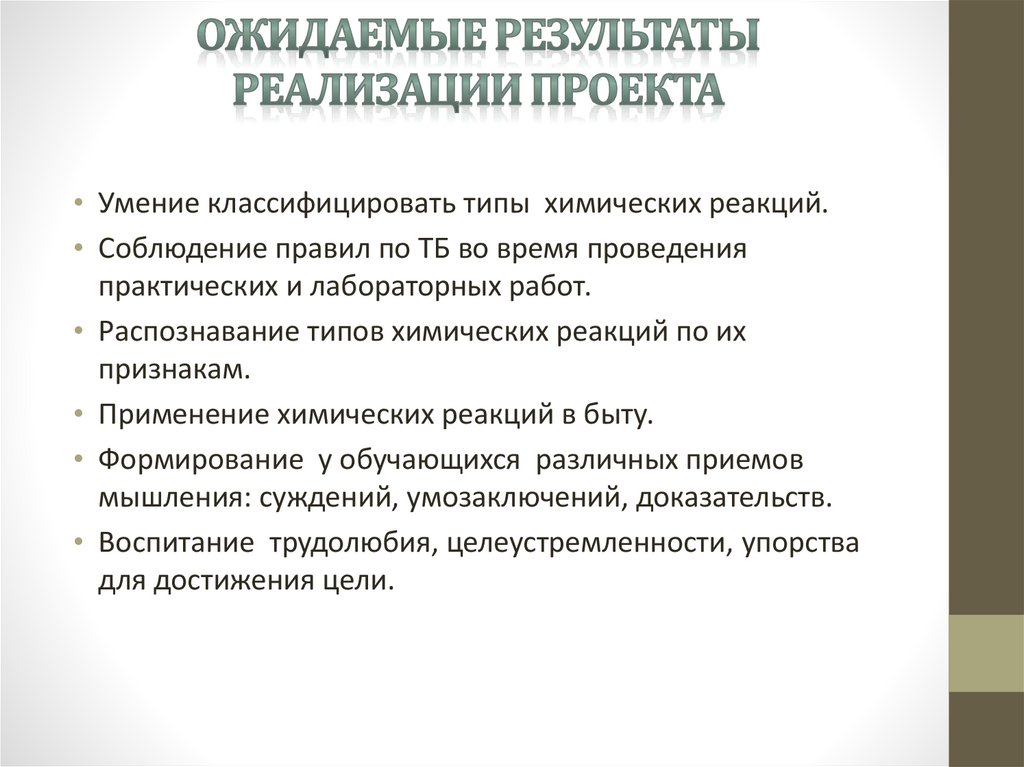 • Умение классифицировать типы химических реакций.• Соблюдение правил по ТБ во время проведения
