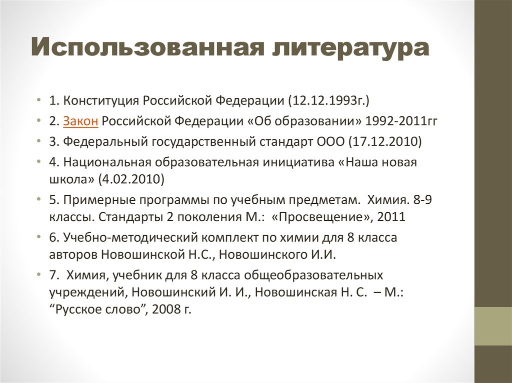 Использованная литература1. Конституция Российской Федерации (12.12.1993г.)