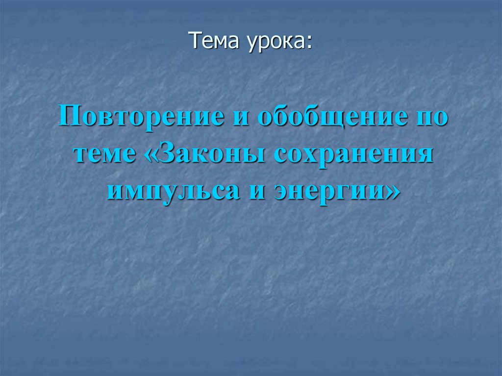 Повторение и обобщение по теме «Законы сохранения импульса и энергии»