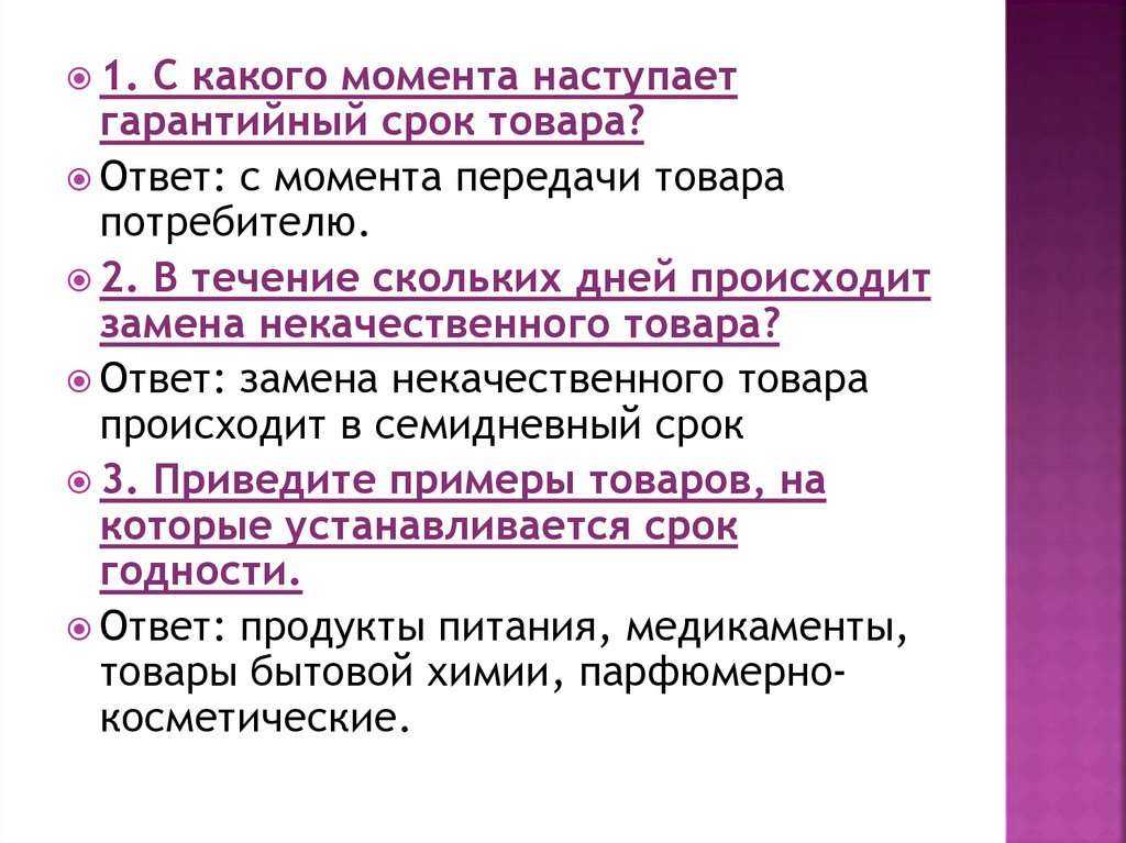Ответ: замена некачественного товара