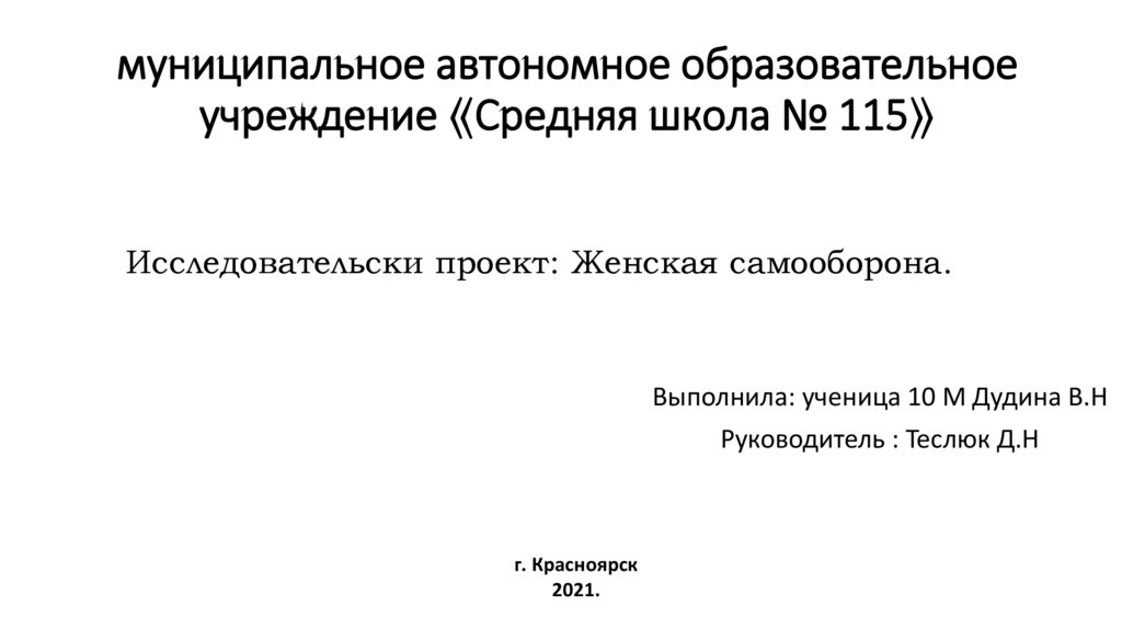 Предмет исследования: Самооборона для женского пола.