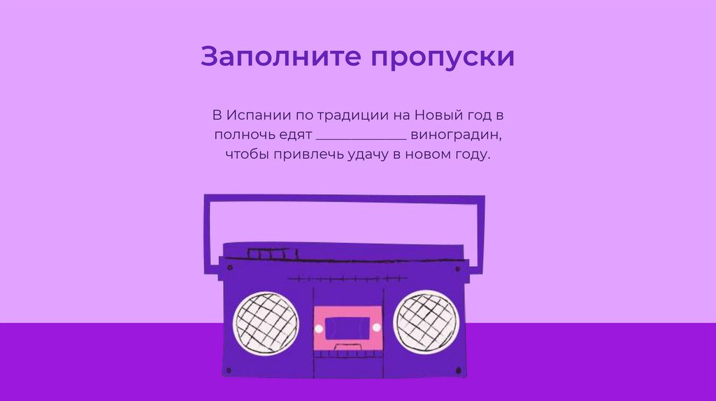 Заполните пропускиВ Испании по традиции на Новый год в