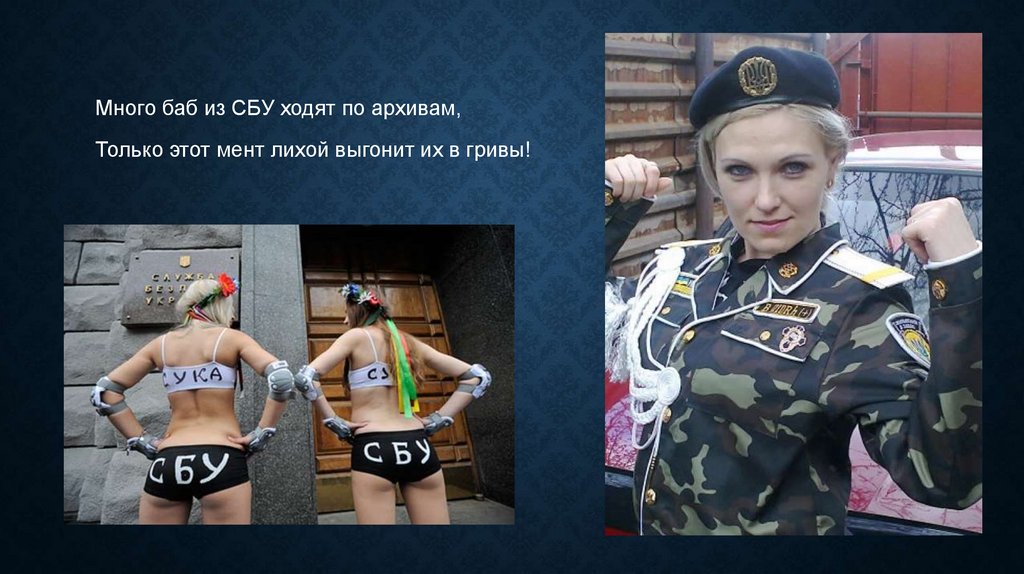 Много баб из СБУ ходят по архивам,Только этот мент лихой выгонит их в гривы!