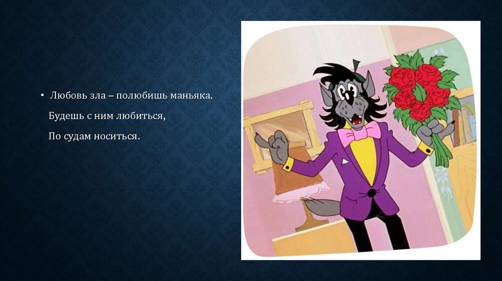 • Любовь зла – полюбишь маньяка.Будешь с ним любиться,