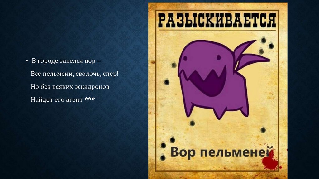 • В городе завелся вор –Все пельмени, сволочь, спер!
