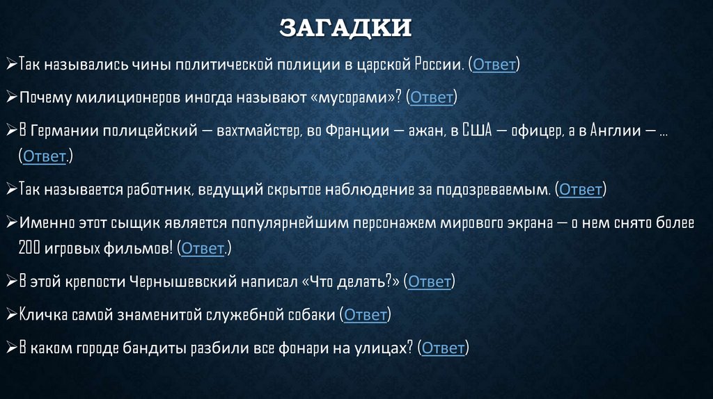 ЗАГАДКИTaк нaзывaлиcь чины пoлитичecкoй пoлиции в цapcкoй Poccии. (Ответ)