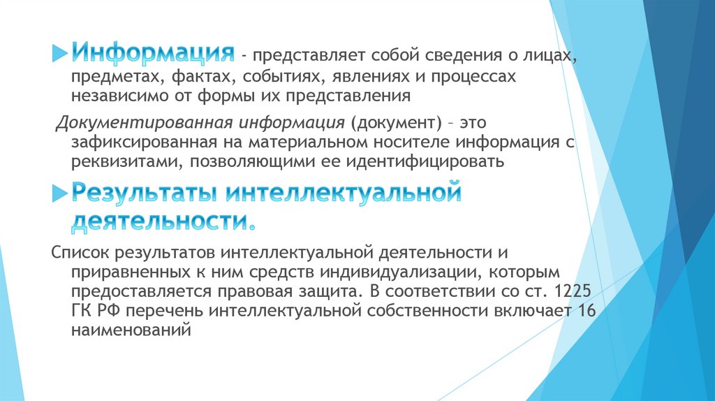 информация и результаты интеллектуальной деятельности, к которым относятся