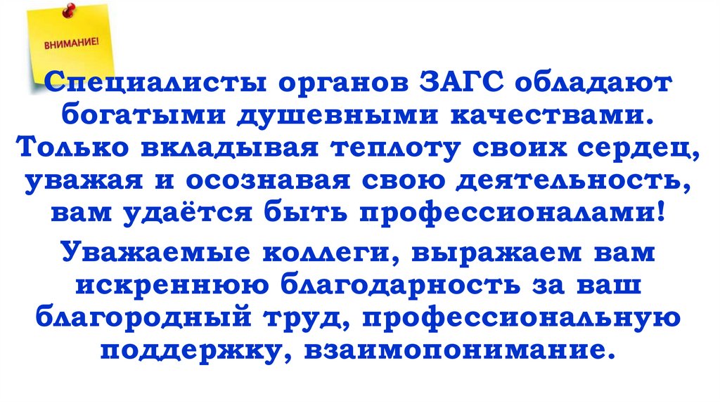 Специалисты органов ЗАГС обладаютбогатыми душевными качествами.