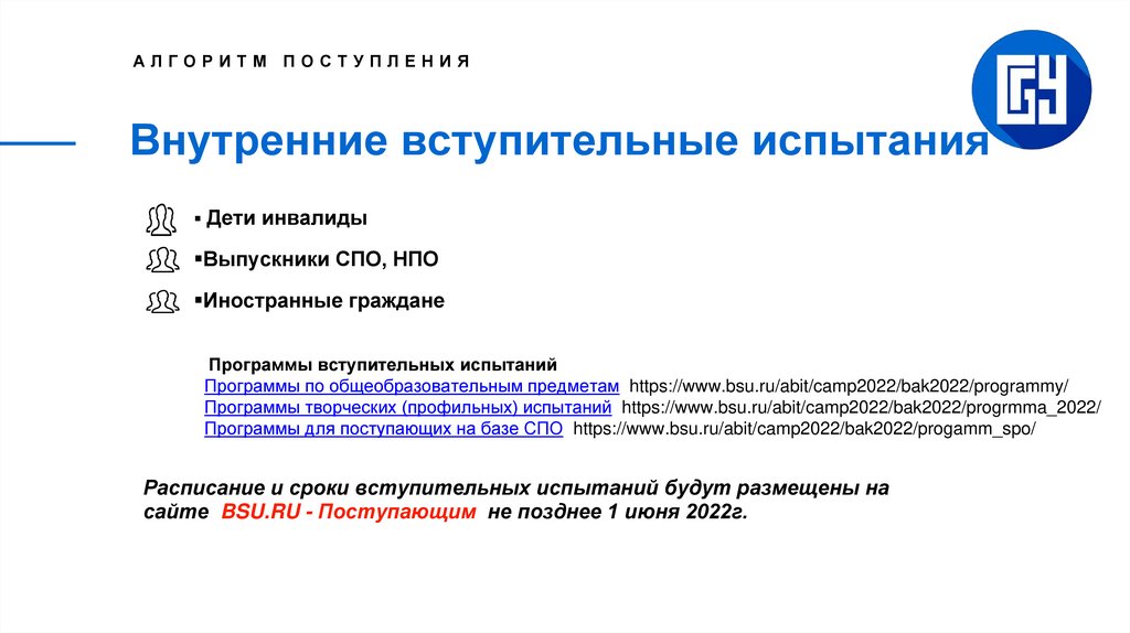 Программы творческих (профильных) испытаний https://www.bsu.ru/abit/camp2022/bak2022/progrmma_2022/