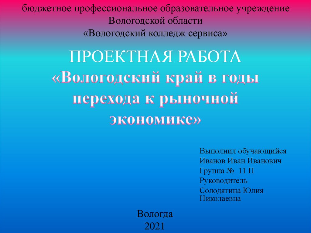 бюджетное профессиональное образовательное учреждениеВологодской области