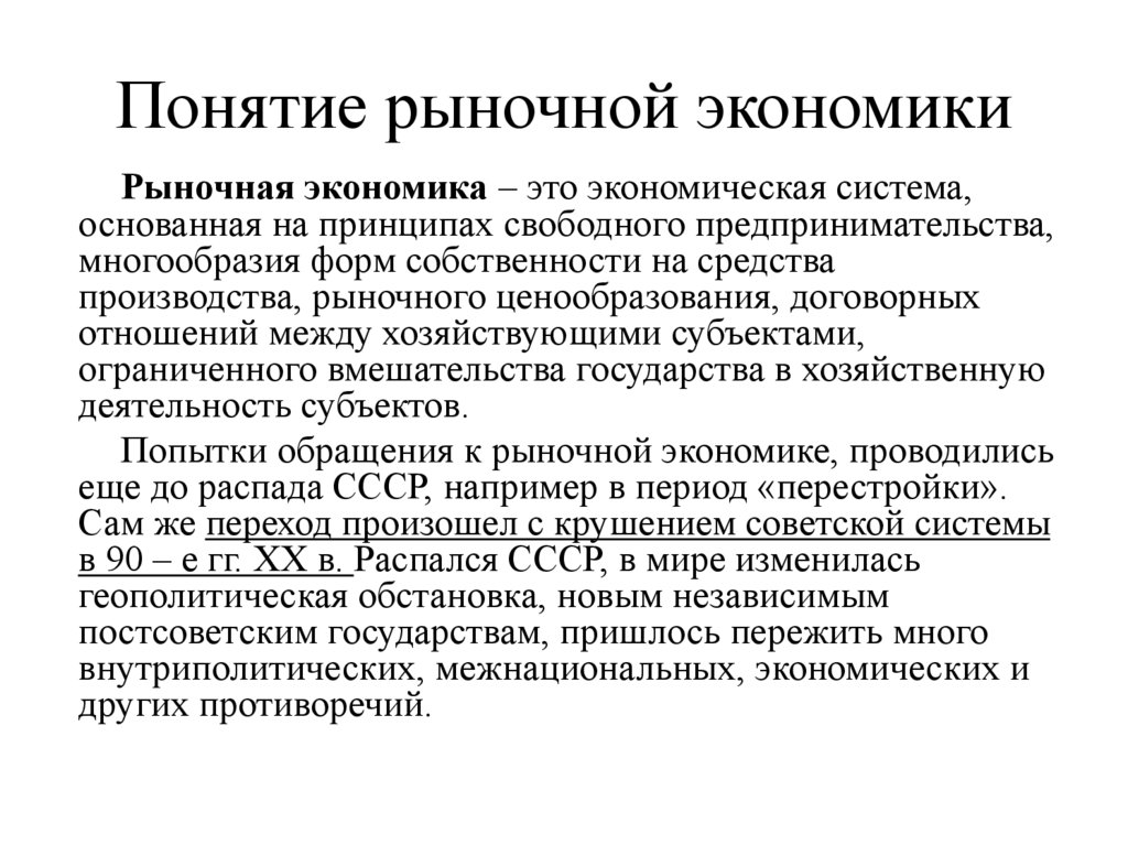 Понятие рыночной экономикиРыночная экономика – это экономическая система,