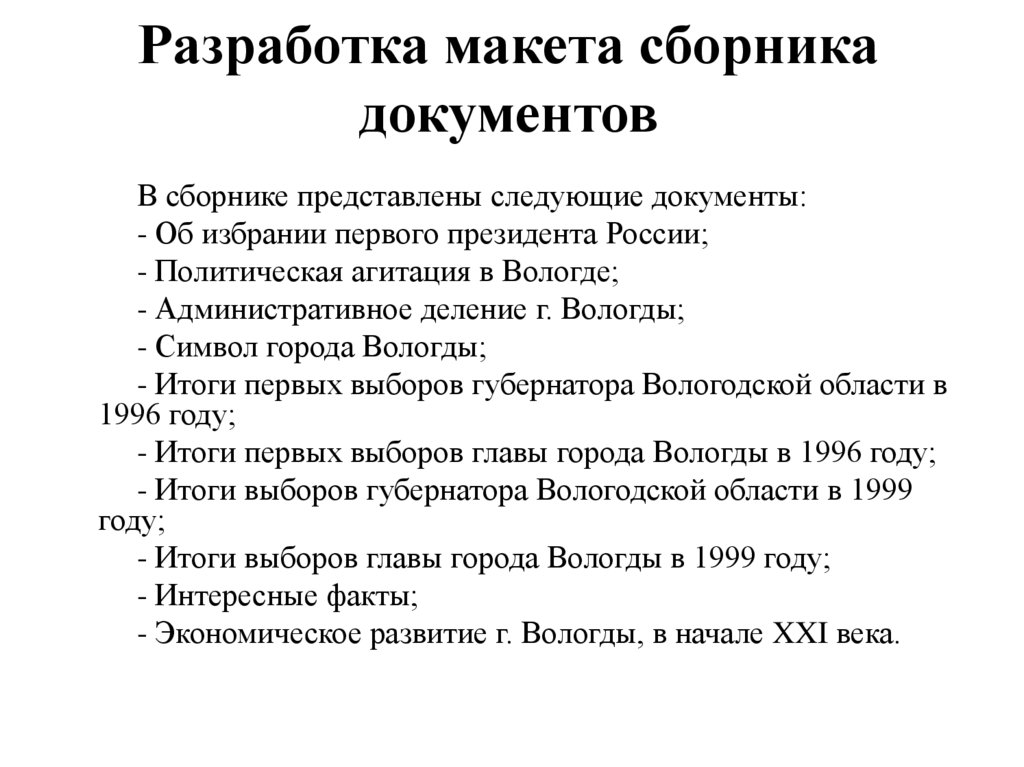 - Итоги первых выборов главы города Вологды в 1996 году;