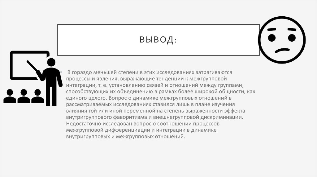 ВЫВОД:• В гораздо меньшей степени в этих исследованиях затрагиваются
