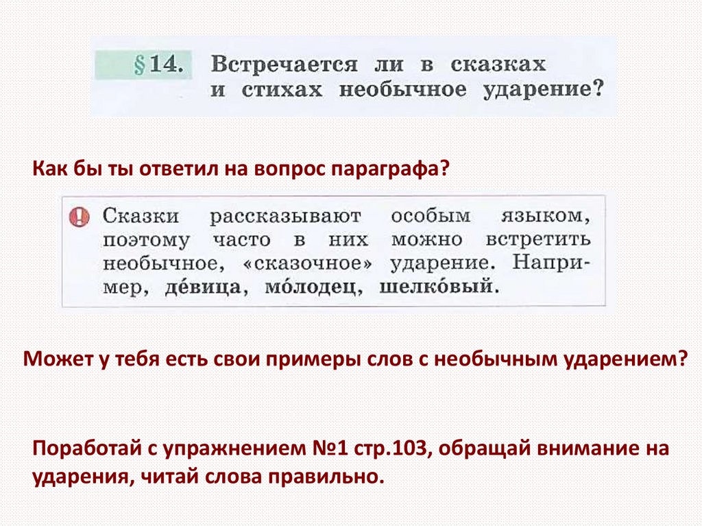 Как бы ты ответил на вопрос параграфа?Может у тебя есть свои примеры слов с необычным ударением?