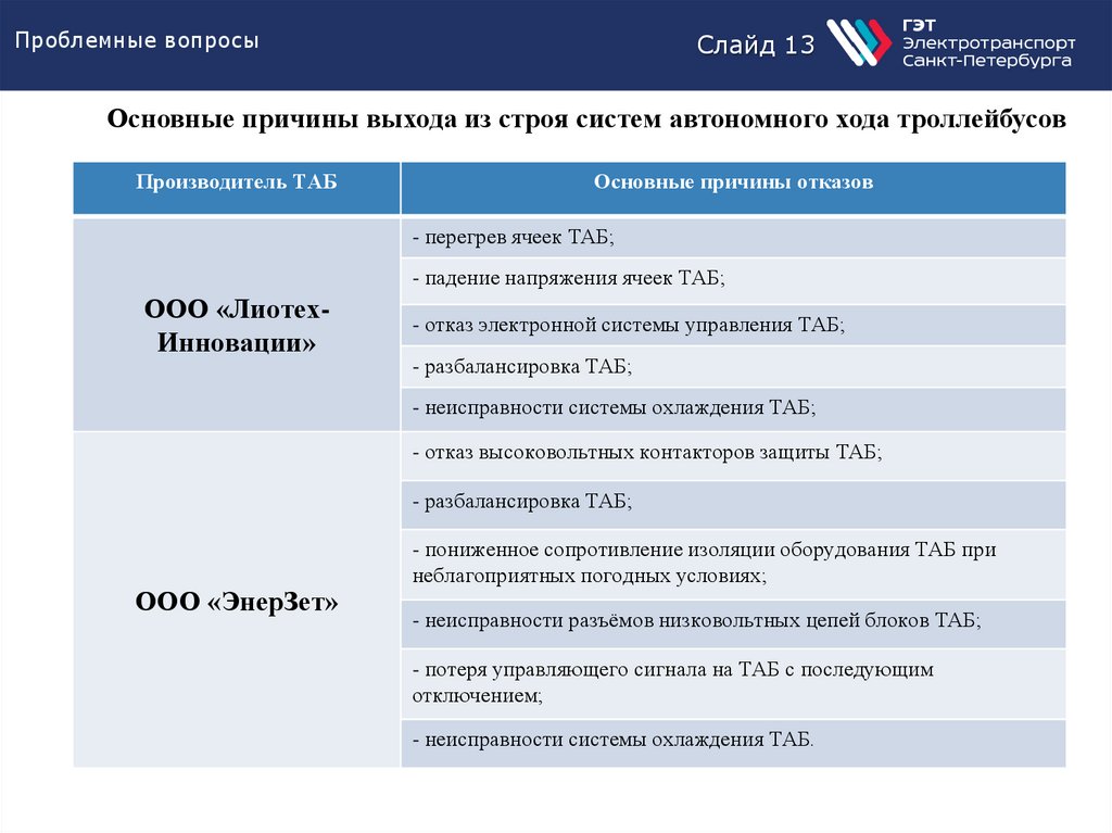 Основные причины выхода из строя систем автономного хода троллейбусов