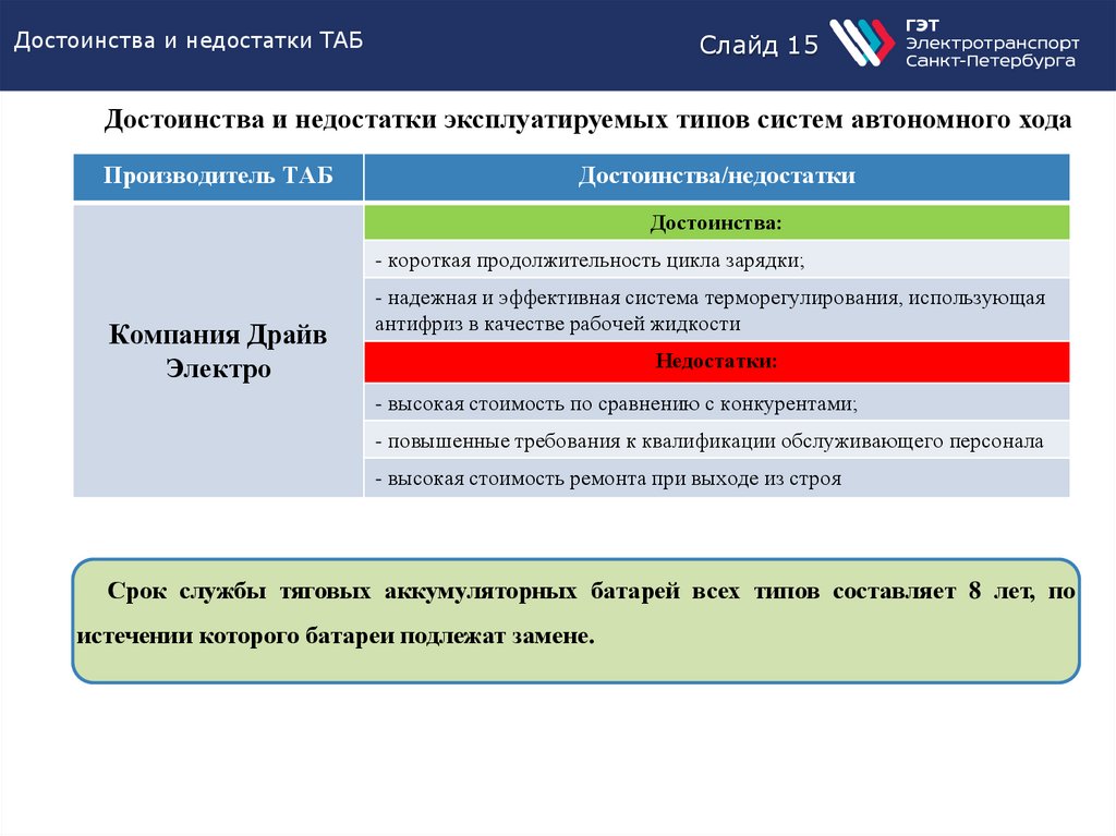 Срок службы тяговых аккумуляторных батарей всех типов составляет 8 лет, по