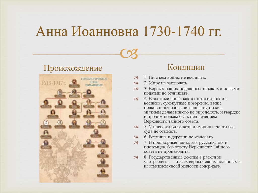 Анна ИоанновнаРазрывает Кондиции