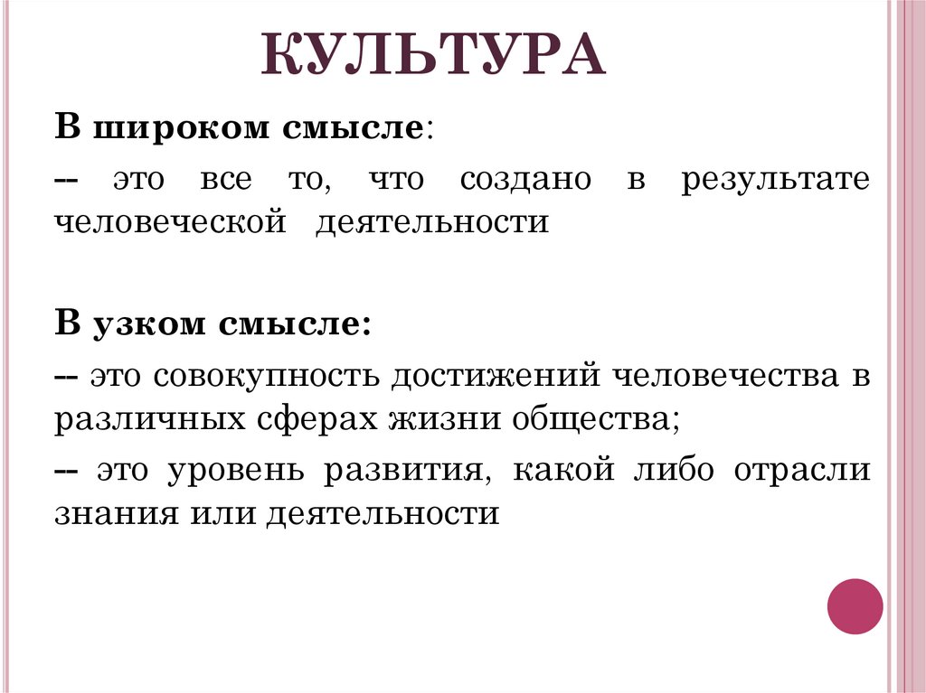 КУЛЬТУРАВ широком смысле: