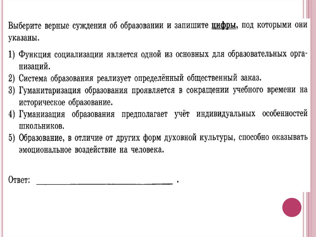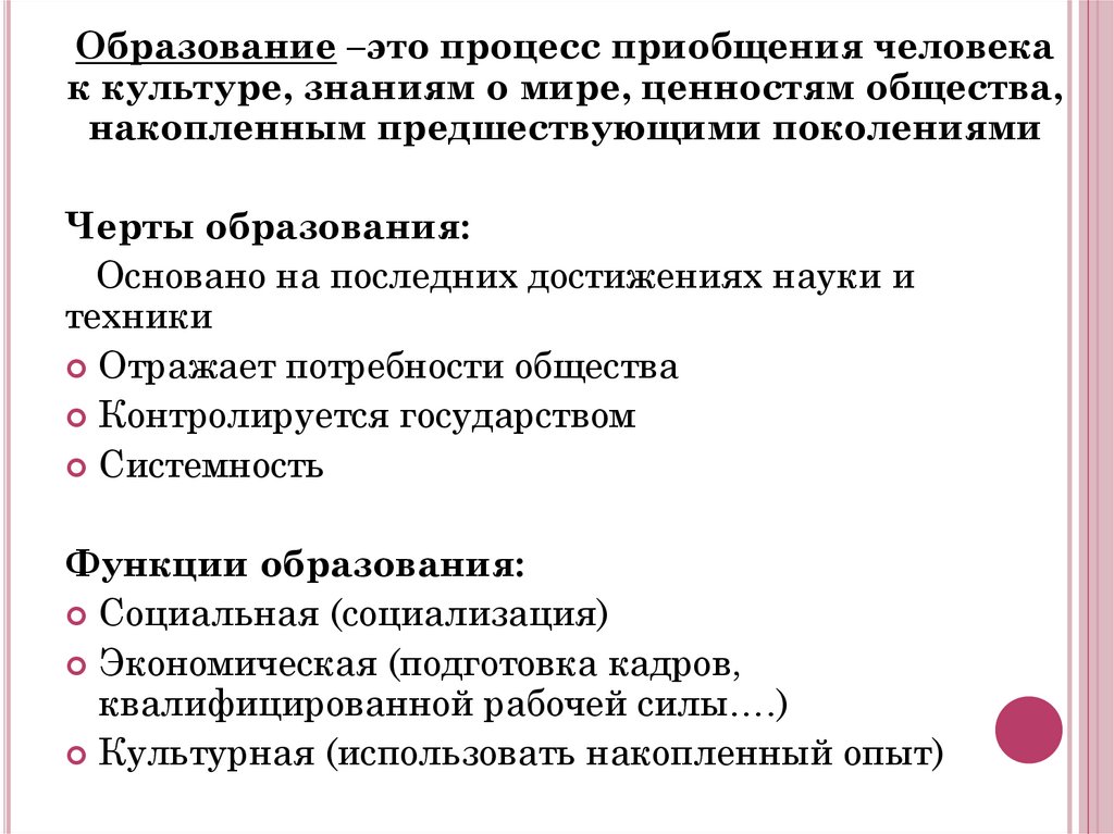 Образование –это процесс приобщения человекак культуре, знаниям о мире, ценностям общества,