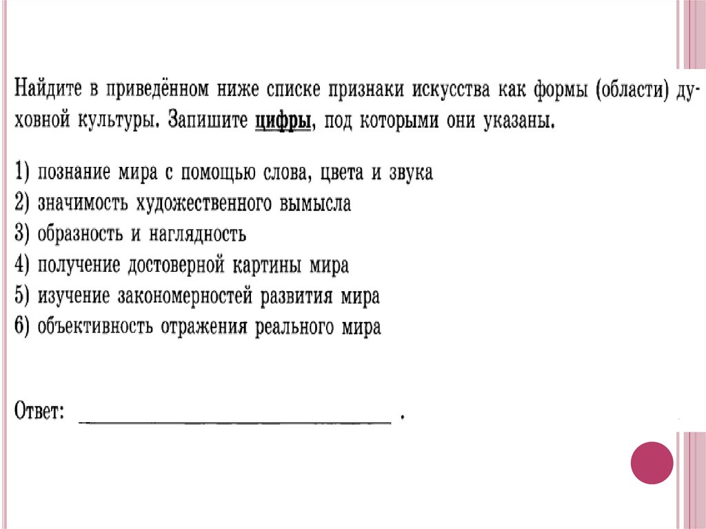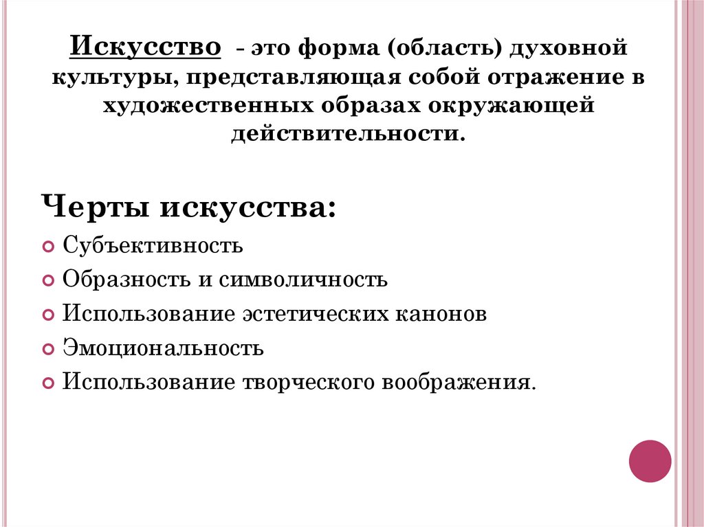 Искусство - это форма (область) духовнойкультуры, представляющая собой отражение в