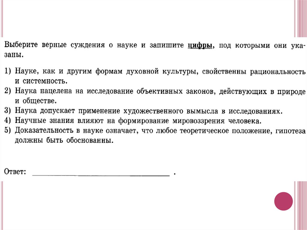 Наука - это форма (область) духовнойкультуры, направленная на выработку