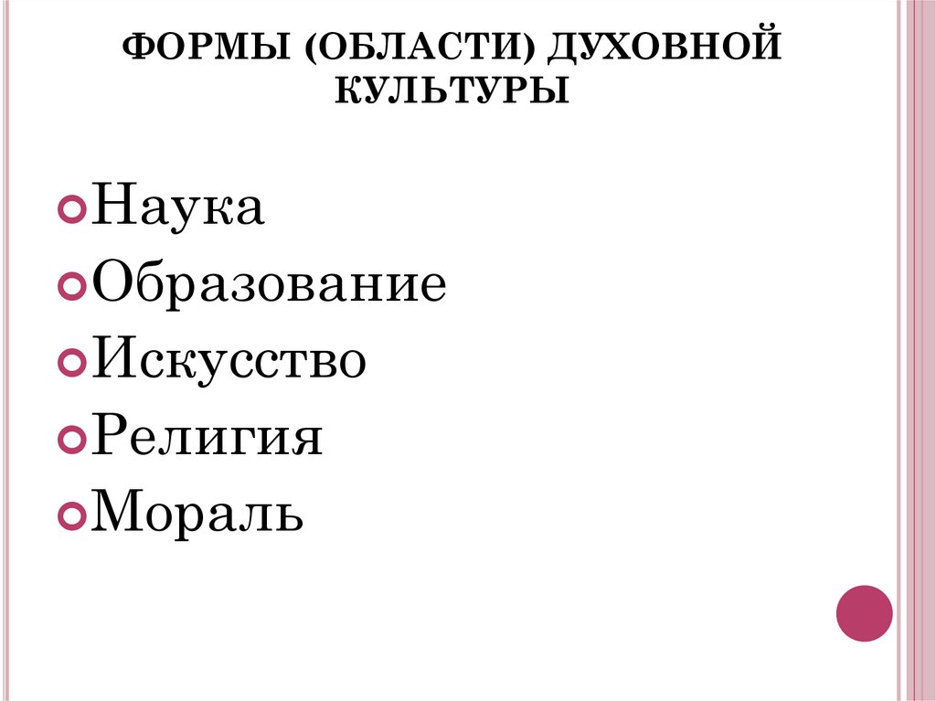 ФОРМЫ (ОБЛАСТИ) ДУХОВНОЙКУЛЬТУРЫ