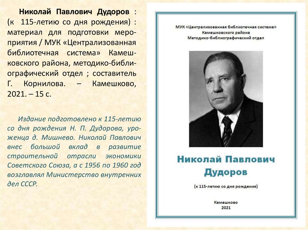 Николай Павлович Дудоров :(к 115-летию со дня рождения) :