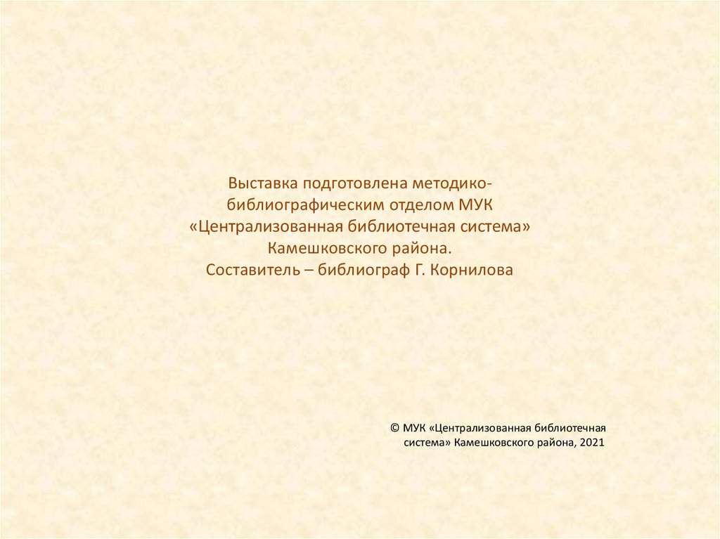 района, методико-библиографический отдел ; составитель Г. Корнилова. – Камешково, 2021. – 10 с.
