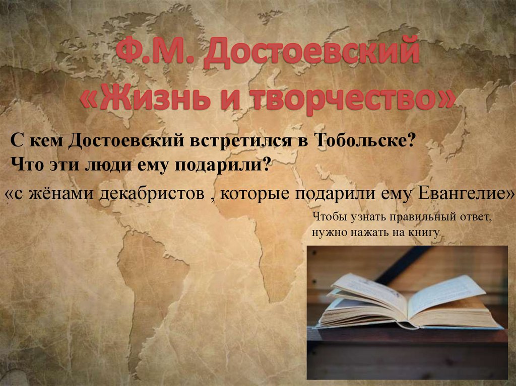 С кем Достоевский встретился в Тобольске?Что эти люди ему подарили?
